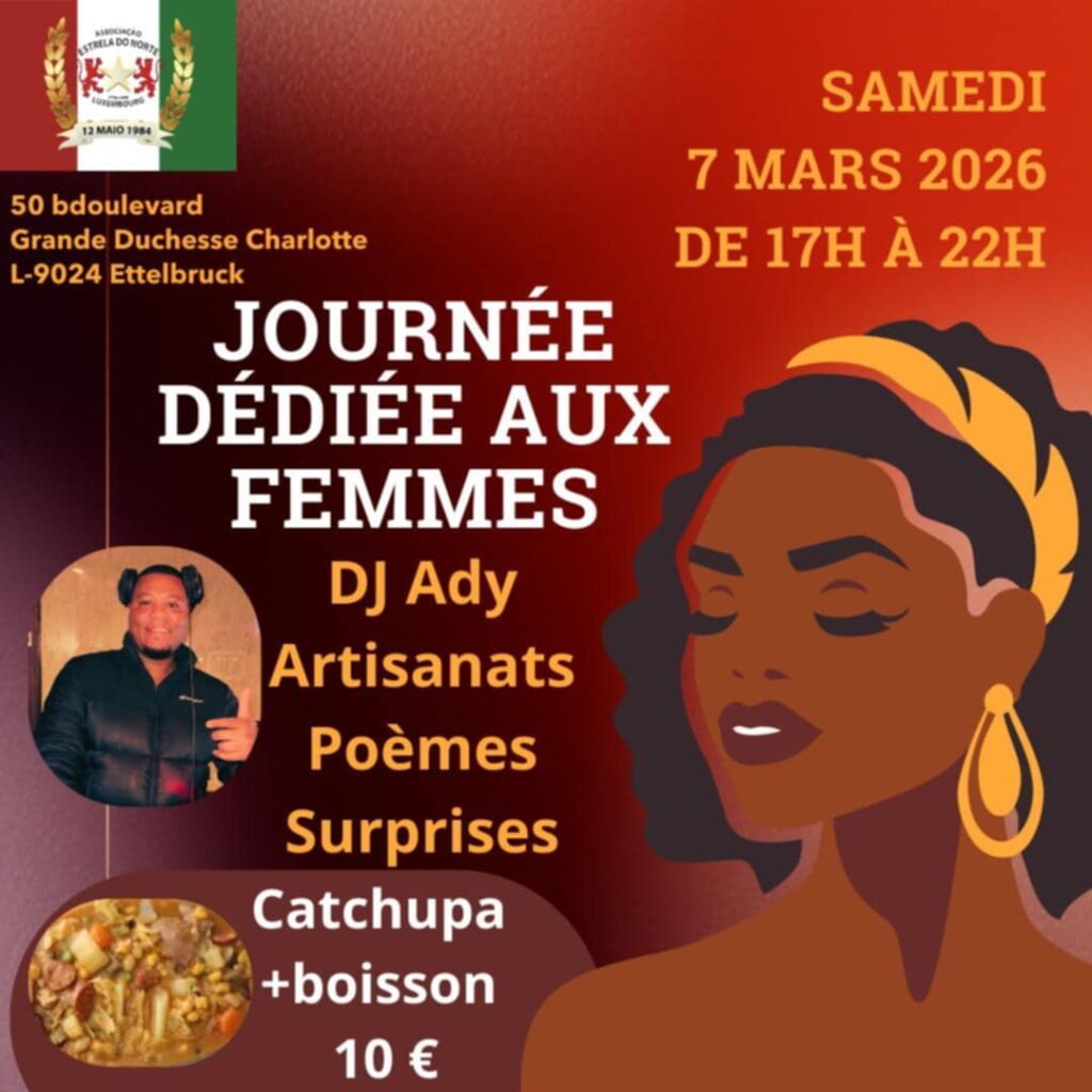Samedi 7 mars 2026, l’association Estrela do Norte organise à Ettelbruck une journée dédiée aux femmes capverdiennes. L’événement aura lieu de 17h à 22h au 50 boulevard Grande-Duchesse Charlotte (L-9024 Ettelbruck). Cette rencontre veut mettre en lumière le talent, la créativité et la place des femmes de la communauté capverdienne, à la veille de la Journée internationale des femmes.