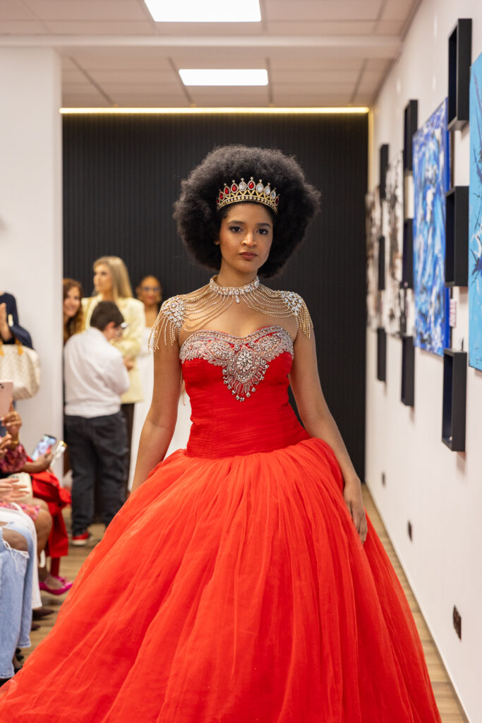 Le défilé de mode, organisé par Jessica Potino et Olivia Koziol pour la première fois au Luxembourg, a apporté une dimension originale. Les modèles ont présenté des robes de style princesse, ainsi que des créations pour hommes et enfants. Dans une seconde partie, les tenues ont été associées aux tableaux de Nelson Neves, créant un dialogue entre la mode et la peinture.