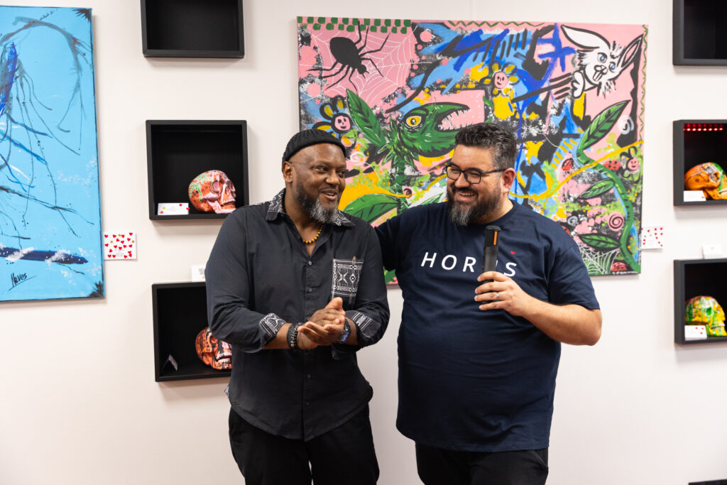 Le finissage organisé autour de l’artiste capverdien Nelson Neves a rencontré un beau succès au Luxembourg. L’événement a réuni de nombreuses personnes venues découvrir son univers artistique, mais aussi les créations de la styliste Cátia Ramos. L’agence Horus était remplie et l’ambiance était conviviale et animée.