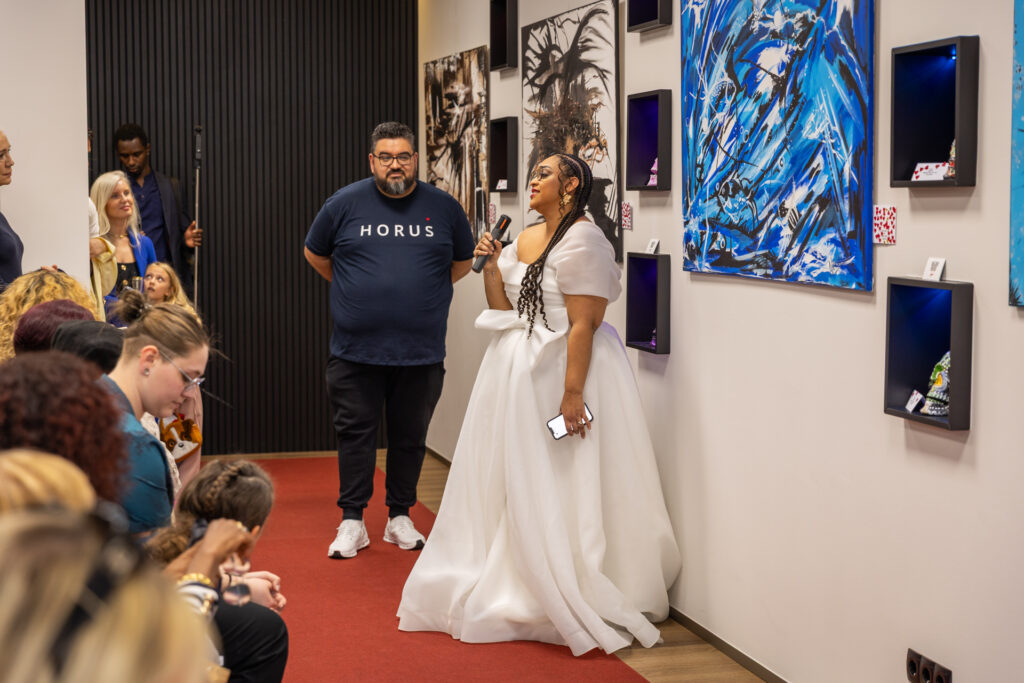 Fabio Caiano, de l’agence Horus et promoteur de l’événement, a souligné la joie de donner, en référence à la dimension solidaire de cette rencontre. Une partie des ventes de tableaux sera consacrée à un projet social pour les jeunes à Cabo Verde. Comme l’a rappelé Nelson Neves en citant Amílcar Cabral, l’éducation reste l’arme la plus efficace contre la pauvreté. De son côté, Cátia Ramos a partagé une mode inspirée de son histoire, mêlant influences orientales, marocaines et brésiliennes, avec des créations uniques réalisées sur mesure.